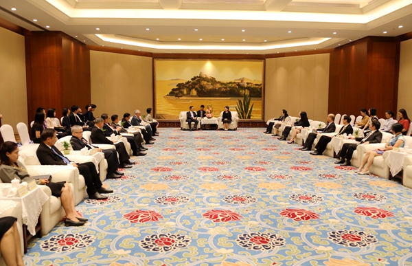 泰国驻厦门总领事甘迪满,华侨大学校长徐西鹏,厦门市外侨办副巡视员林娜,华侨大学副校长曾路等参加会见。