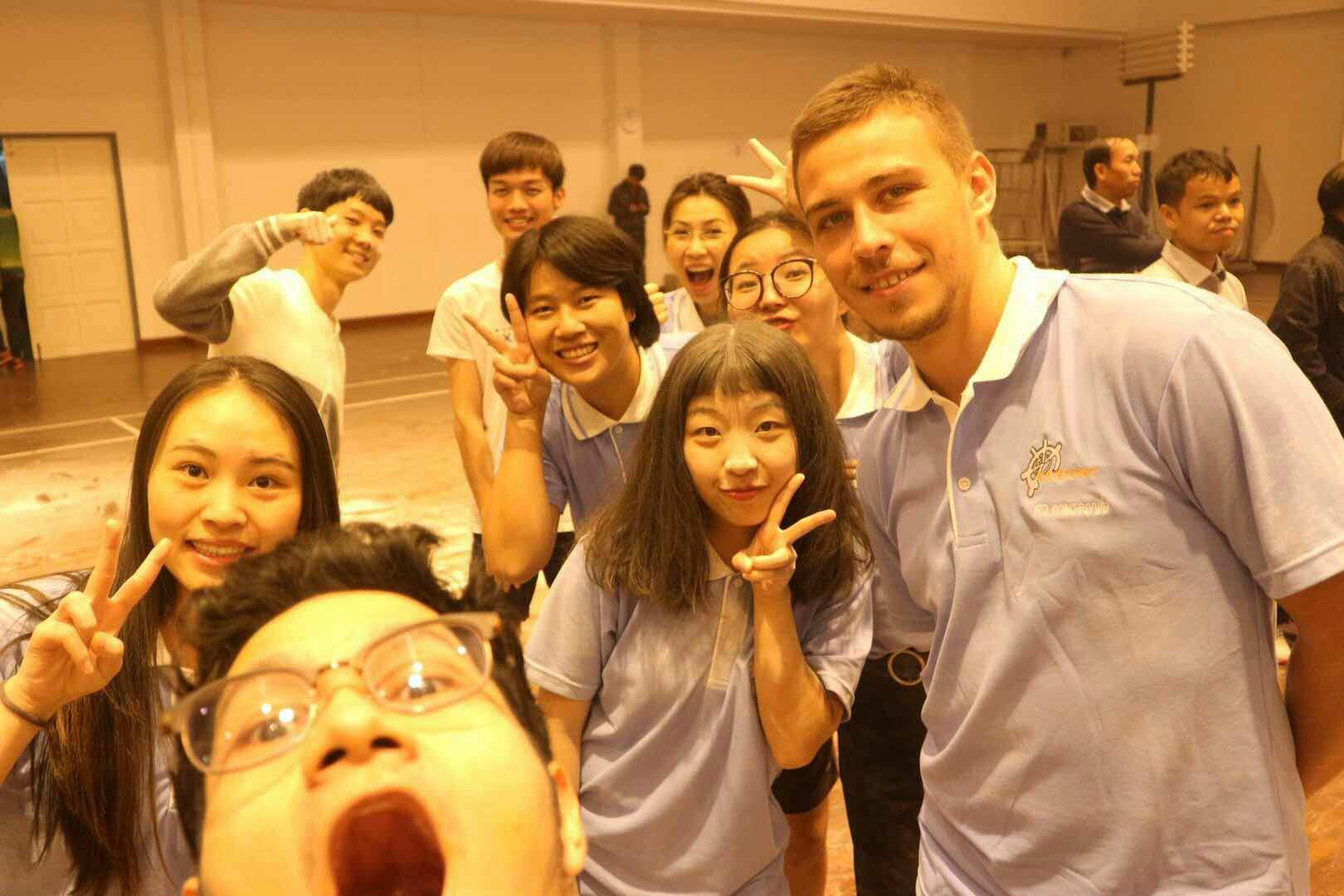 我们5位志愿者老师来自祖国的不同省份,从北方的山西,到中原的河南,再到中南的江西,以及西南的云南和东南的福建。不同的乡音,不同的饮食习惯,却可以在中秋之夜围坐在一起享受一顿学生区的牛肉烧烤,分一块榴莲味的月饼;为办好卡拉OK大赛、国际美食节活动等活动,齐心协力,从策划开始,筹备会、前期准备、活动过程进行中,一直到结束的收尾工作以及反思,每个人都尽职尽责,毫无怨言;晚饭时一起相约校园的夜市或宿舍对面的餐馆,有说有笑;闲暇时一起结伴出游,一起领略其他城市的魅力。感动于生病时学弟学妹们的关怀和照顾,送来的药品和奶糖;难过时他们无私的陪伴,一起骑行五公里,到校门口的甜品店静坐聊天;开心时一起分享自己制作的馒头、蛋糕、披萨和酸奶,收到他们发自内心的赞赏和鼓励。我们没有血缘关系,却像一家人一样,互相关爱,互相包容,共同成长,共同进步。