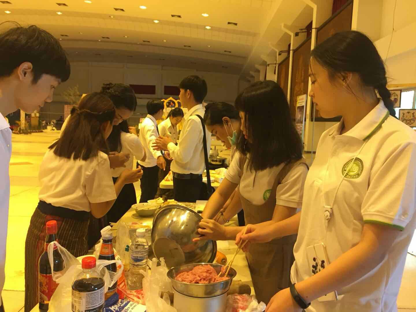 体验礼佛文化,细细观看这座存有释迦牟尼手指骨的城春寺,望着前来朝拜的人们那虔诚的样子。参观一个叫Kram的农场,现场观看indigo扎染工艺神奇的制作过程,惊叹于大自然赋予这种植物独特的颜色魅力。参加国际美食节,越南的春卷,尼泊尔的酸奶,捷克的土豆泥,中国的饺子,各国美食触碰着味蕾,将不同国家的人们串联在一起。我们结识了捷克的如迪,越南的安迪和萨拉,尼泊尔的尼鲁,还有塞尔维亚的米兰,交心于拥有华裔背景的泰国小哥国强和越南小哥三三。他们以交换生或者工作的名义来到泰国农业大学色军分校,和我们住在同一个楼栋,一起参加英语角的活动,一起吃饭,一起运动,一起烘焙,我们学说每个国家打招呼的方式,也教会他们如何说你好和谢谢。我们从各自身上看到不同的文化烙印,感受着异域文化的多姿多彩。