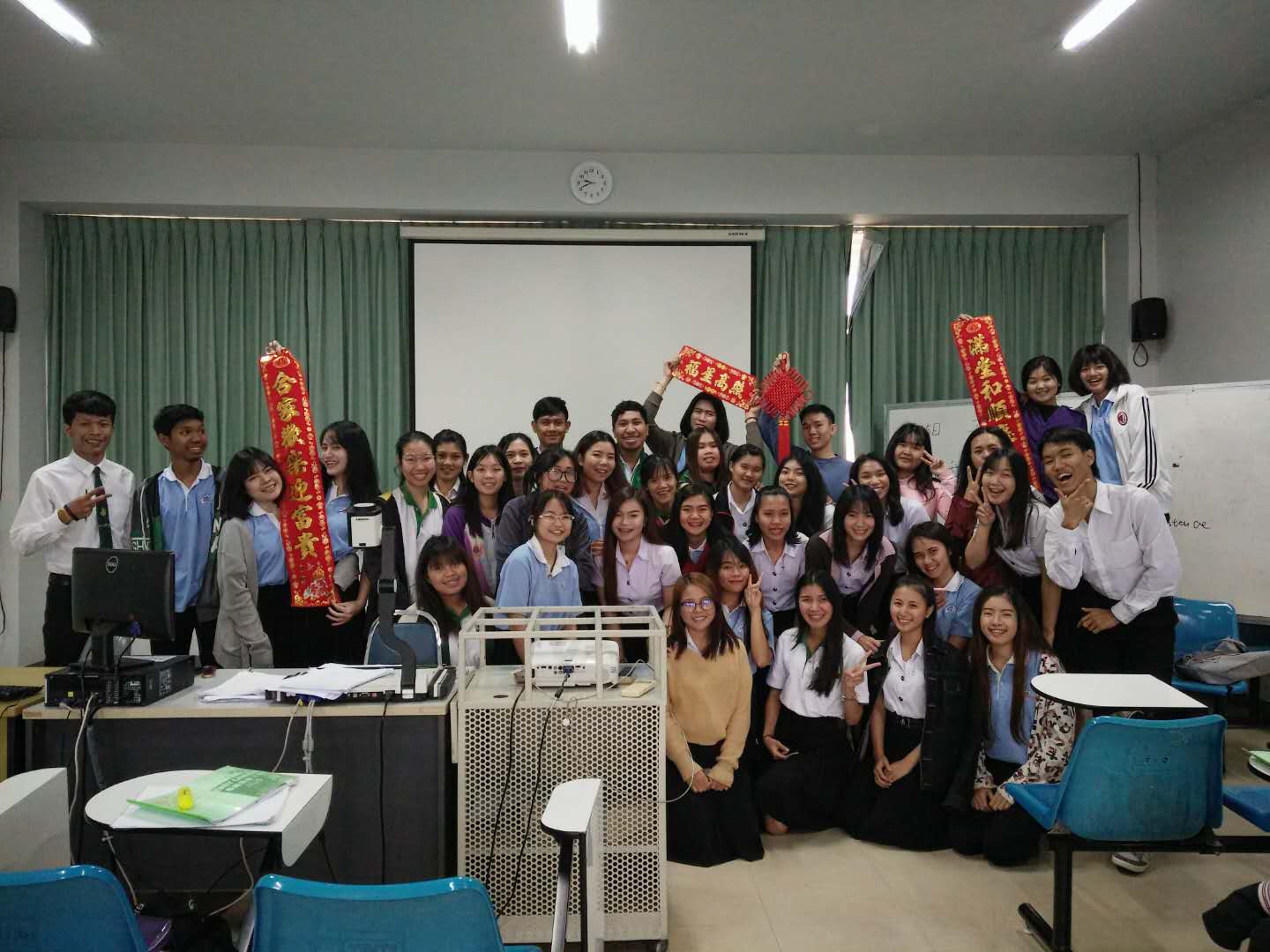 我们是泰国农业大学色军分校目前为止到任人数最多的一批,总共五人。从上任志愿者们的手中接过这支接力棒的我们,也用尽全力向前奔跑。职业技术学院文化艺术节活动的邀请,以人文艺术管理学院教师为主体的教师班的开设,以及HSK考点的申报,我们看到了悉心浇灌的汉语之花,正在蓄势。我相信下任志愿者们也会怀着一颗赤诚的心,接过我们手中的接力棒,继续前行。期待着,这里的汉语之花绽放时那瞬间夺目的光彩,期待着学生们懂得欣赏它动人的美丽,期待着花朵的芬芳可以飘向更远的地方,沁人心脾。