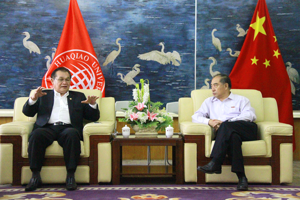 泰中文化经济协会副会长、教育委员会主席参猜,泰中文化经济协会副会长、教育委员会副主席颂喷,泰国国防部特别顾问比亚中将,泰国驻厦门总领馆领事谢婉玲,我校校长贾益民、副校长曾路等出席开学典礼并为学员佩戴华侨大学校徽。